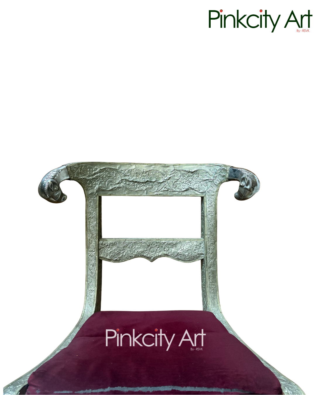 This exquisitely crafted heritage-inspired chair draws its design influence from classic Anglo-Indian floral artistry, showcasing intricate hand carving across the entire structure. Every surface is adorned with flowing floral patterns that reflect colonial-era elegance blended with Indian craftsmanship. The backrest edges are distinctively carved in the form of ram’s heads, symbolizing strength, authority, and timeless character. Made with exceptional attention to detail, this chair stands as a statement piece—perfect for heritage interiors, luxury spaces, or collectors who appreciate refined craftsmanship and historical design.