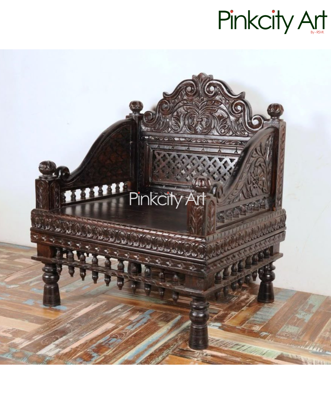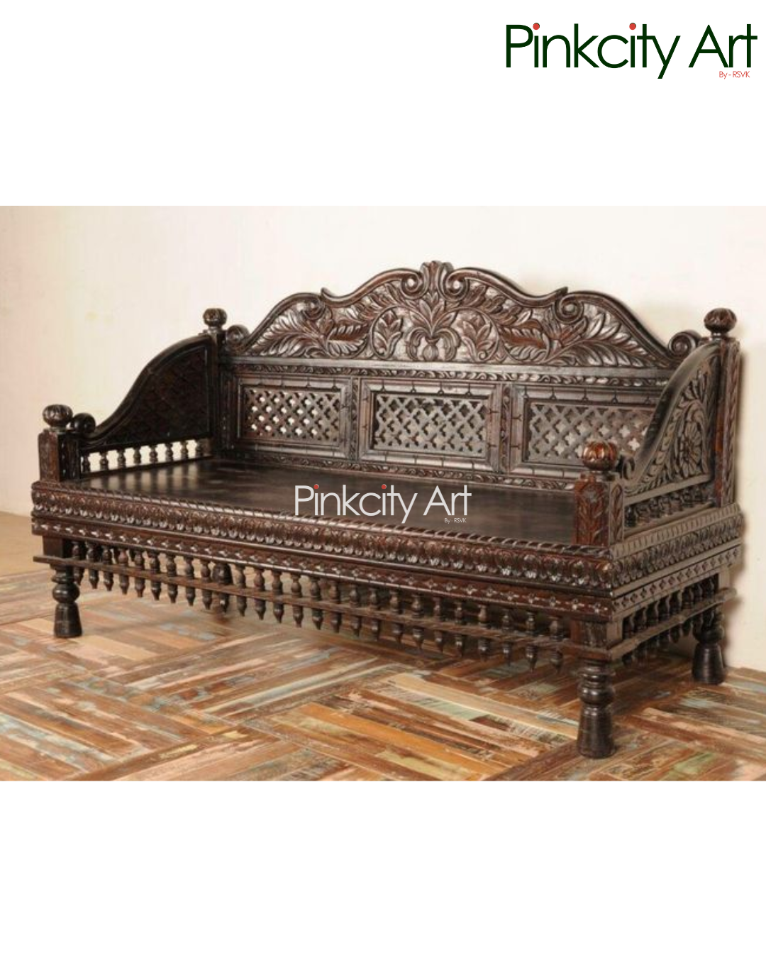 This elegant hand-carved wooden sofa set is designed to comfortably seat five people, blending traditional craftsmanship with timeless style. Expertly crafted from solid wood, the sofa features intricate hand carving across the backrest, arms, and base, showcasing detailed floral and lattice patterns. The rich finish and sturdy structure add both beauty and durability, making it a perfect centerpiece for living rooms, heritage interiors, and premium spaces. A true reflection of skilled artistry, this sofa set offers comfort, grandeur, and lasting elegance.